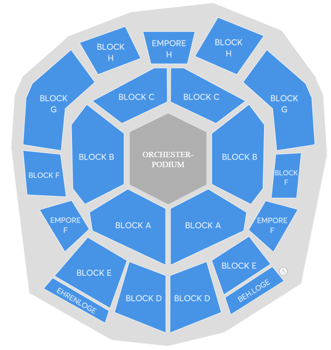 Die unten gezeigte Karte gibt keine aktuellen Verfügbarkeiten wieder. Die Sitzpläne zeigen die allgemeine Anordnung des Veranstaltungsortes in diesem Moment, und für bestimmte Veranstaltungen können die Anordnung und die genaue Sitzplatzverteilung ohne vorherige Benachrichtigung geändert werden.