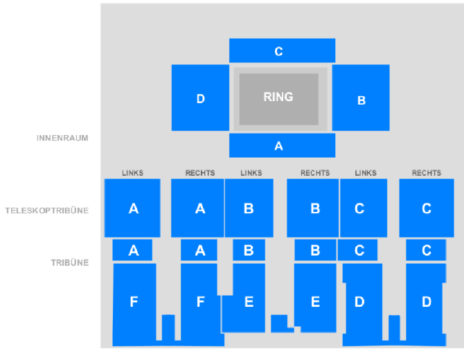 Die unten gezeigte Karte gibt keine aktuellen Verfügbarkeiten wieder. Die Sitzpläne zeigen die allgemeine Anordnung des Veranstaltungsortes in diesem Moment, und für bestimmte Veranstaltungen können die Anordnung und die genaue Sitzplatzverteilung ohne vorherige Benachrichtigung geändert werden.